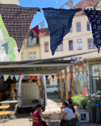 Bunte Wimpel im Sommerwind bedeuten in der Dresdner Friedrichstadt: Es wird gefeiert! Und so ging das 27. Friedrichstädter Stadtteilfest am 10. September an den Start. Organisiert wurde das bunte Treiben von Mitarbeiter:innen des Kulturforums (Riesa efau), dem Team der Mobilen Arbeit Friedrichstadt (MAF) der Outlaw Kinder und Jugendhilfe und des Stadtteiltreffs Eckladen (ebenso Outlaw gGmbH) im Auftrag der Stadtteilrunde Friedrichstadt/Mitte.