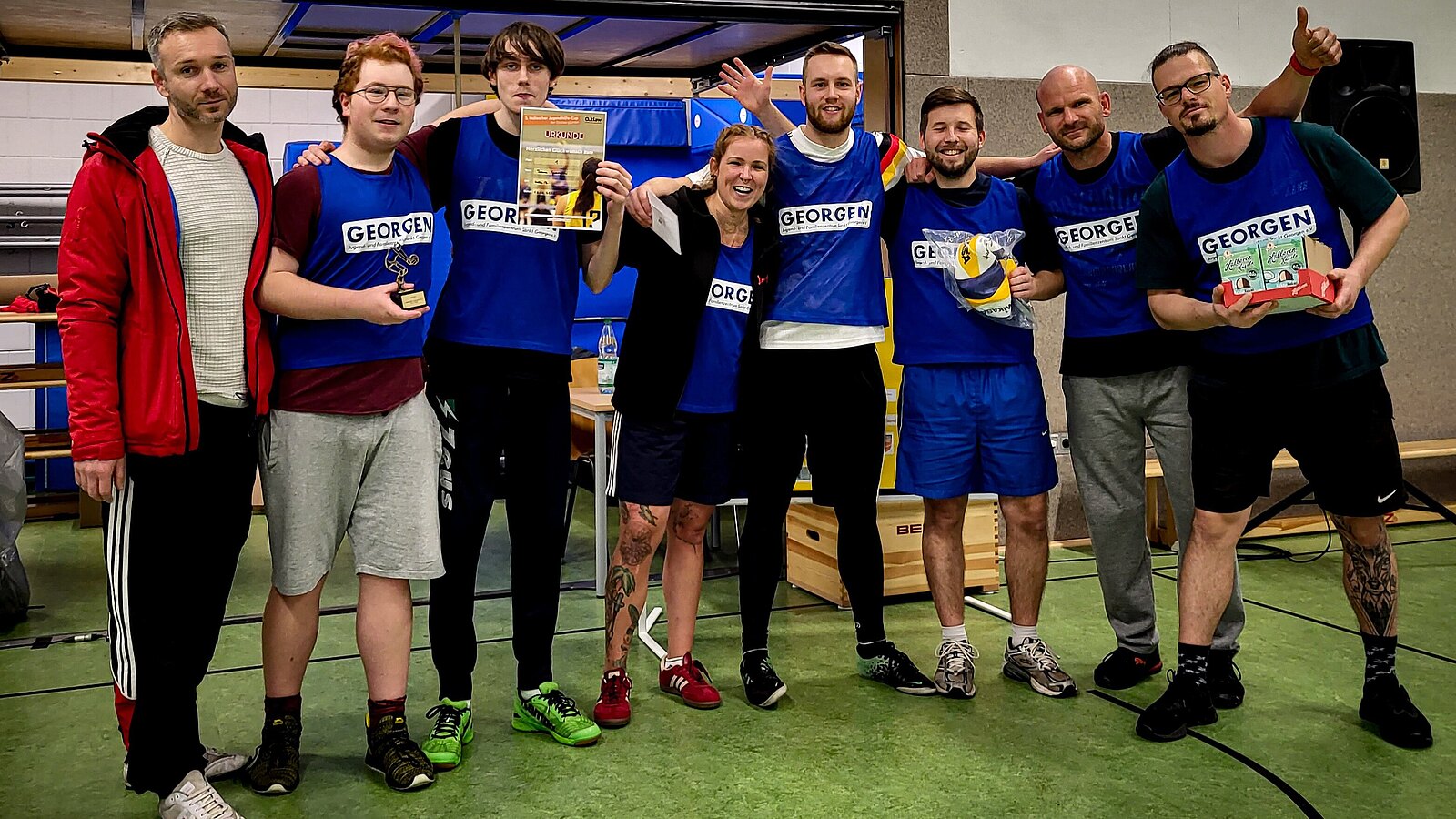 Das wird langsam zur sportlichen Tradition: Zum 3. Mal richteten die HzE-Teams am Standort Halle/Saalekreis das beliebte Volleyballturnier für Jugendliche und Pädagog:innen von Outlaw-Einrichtungen sowie anderer Jugendhilfeträger am 19. November aus – und mehr als 60 Sportler:innen folgten der Einladung. Erstmals fand das Turnier um die beste Volleyball-Mannschaft – aber auch um das beste Mannschafts-Kostüm – zentral in der Innenstadt in der Sporthalle am Steg statt und vor Ort boten die insgesamt 8 Teams faire Spiele und ein spannendes Finale. Den 1. Platz sicherte sich das Team „Georgen“ – die sich im fordernden Finalspiel gegen die „Voll(ey)knaller“ durchsetzen. Platz 3 belegten „Die Antiquerpfeiffen“ der HzE Leipzig und der Preis für das beste Kostüm ging an das Team der Kinder-WG Kruke „Der Ball sein ist alles“.