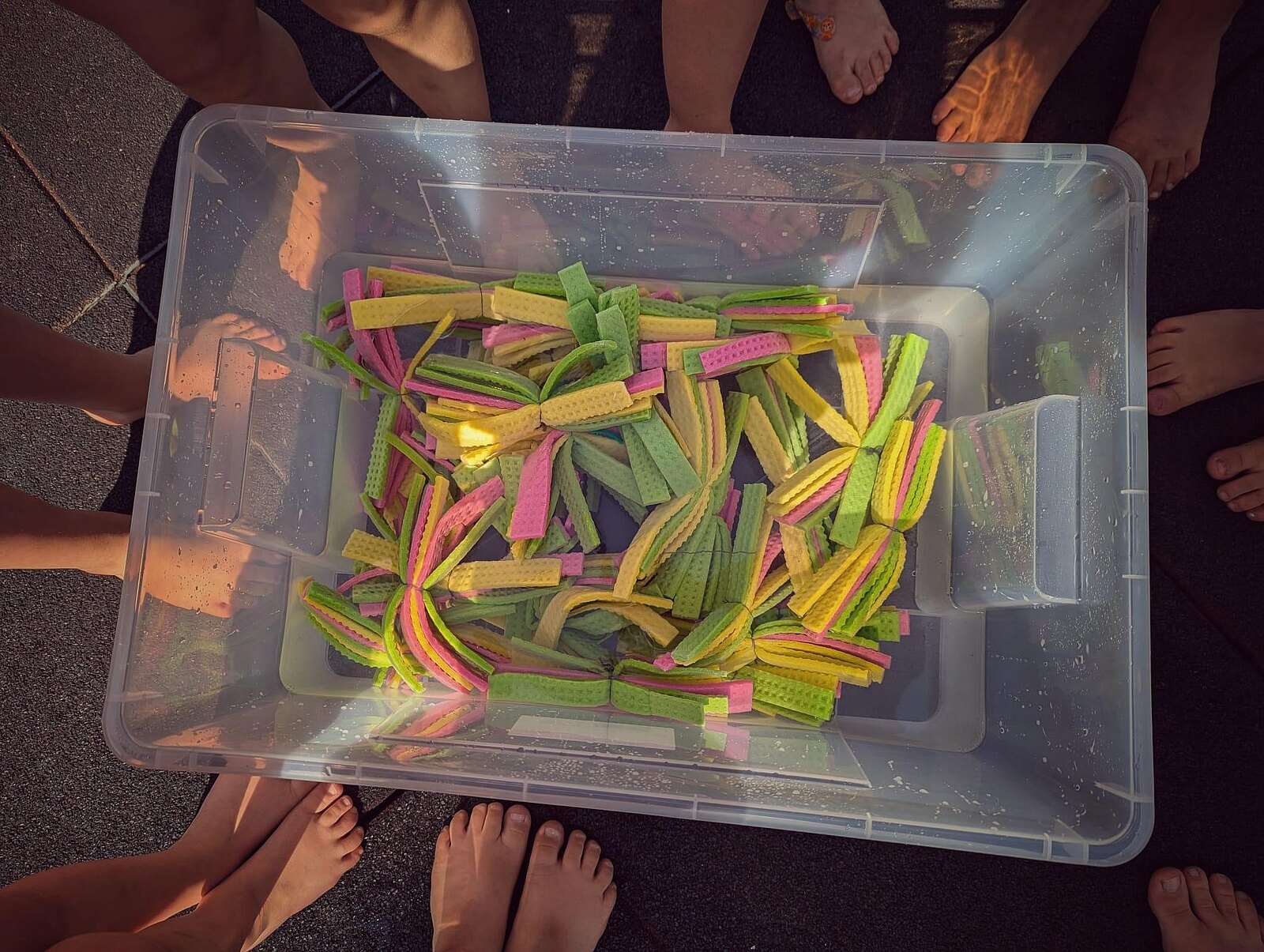 Sommer, Sonne, Hitze! In der letzten Woche kletterten die Temperaturen wieder hoch an die 30-Grad-Marke. Eine erfrischende Abkühlung musste her! Bereits im letzten Jahr bastelten die Kinder der Kita Blumenstraße in Leipzig aus bunten Schwämmchen nachhaltige und wiederverwendbare Schwammbälle. Und genau diese kamen nun bei dem herrlichen Sommerwetter wieder zum Einsatz – und sorgten für jede Menge Wasserspaß!