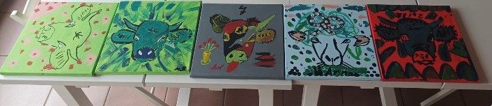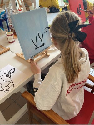 Gemeinsam mit zwei Pädagog:innen des Leipziger Outlaw-Teams fand das künstlerische Projekt in den Büroräumen der HzE Wurzner Straße statt. Da die Kinder sich ausprobieren sollten, konnten sie aus drei verschiedenen Tiergesichtern - einem Löwe, einer Kuh und einem Schaf - wählen und das Gesicht ihres eigenen Tieres frei gestalten. Gemalt wurde auf Leinwand und zur Umsetzung stand den Nachwuchs-Künstler:innen eine breite Palette an Farben und Pinseln zur Verfügung, damit alle ihrer Fantasie freien Lauf lassen konnten.