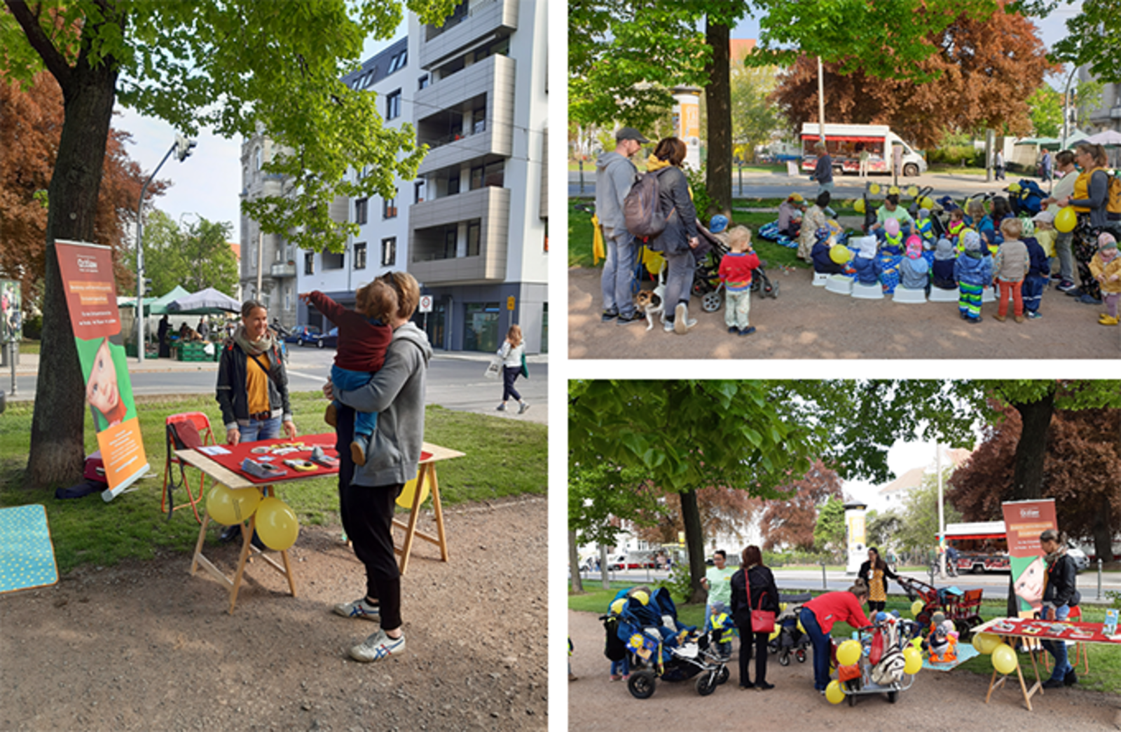 Gelbe Shirts, Luftballons und geschmückte Kinderwagen: Der Münchner Platz in Dresden leuchtete am 4.Mai 2022 gelb zum besonderen Aktionstag „Kindertagespflege? Selbstverständlich!“