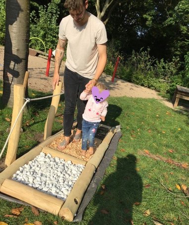 Sofort nach der Fertigstellung probierten die ersten Mutigen den neuen Parcours aus und freuten sich über die neue Attraktion, die ihnen viele Sinneseindrücke und Fußmassagen beschert.