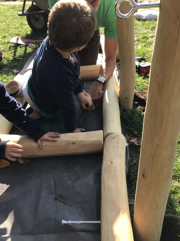 Die Kids der Kita Kinderbachtal können sich über einen neuen Barfußpfad auf ihrem Außengelände freuen. Gemeinsam mit Kitaleiter Julian Heidfeld und einem Kollegen aus dem Immobilienmanagement packten sie fleißig an und bauten drei Felder, die nun mit unterschiedlichen Materialien gefüllt werden können.