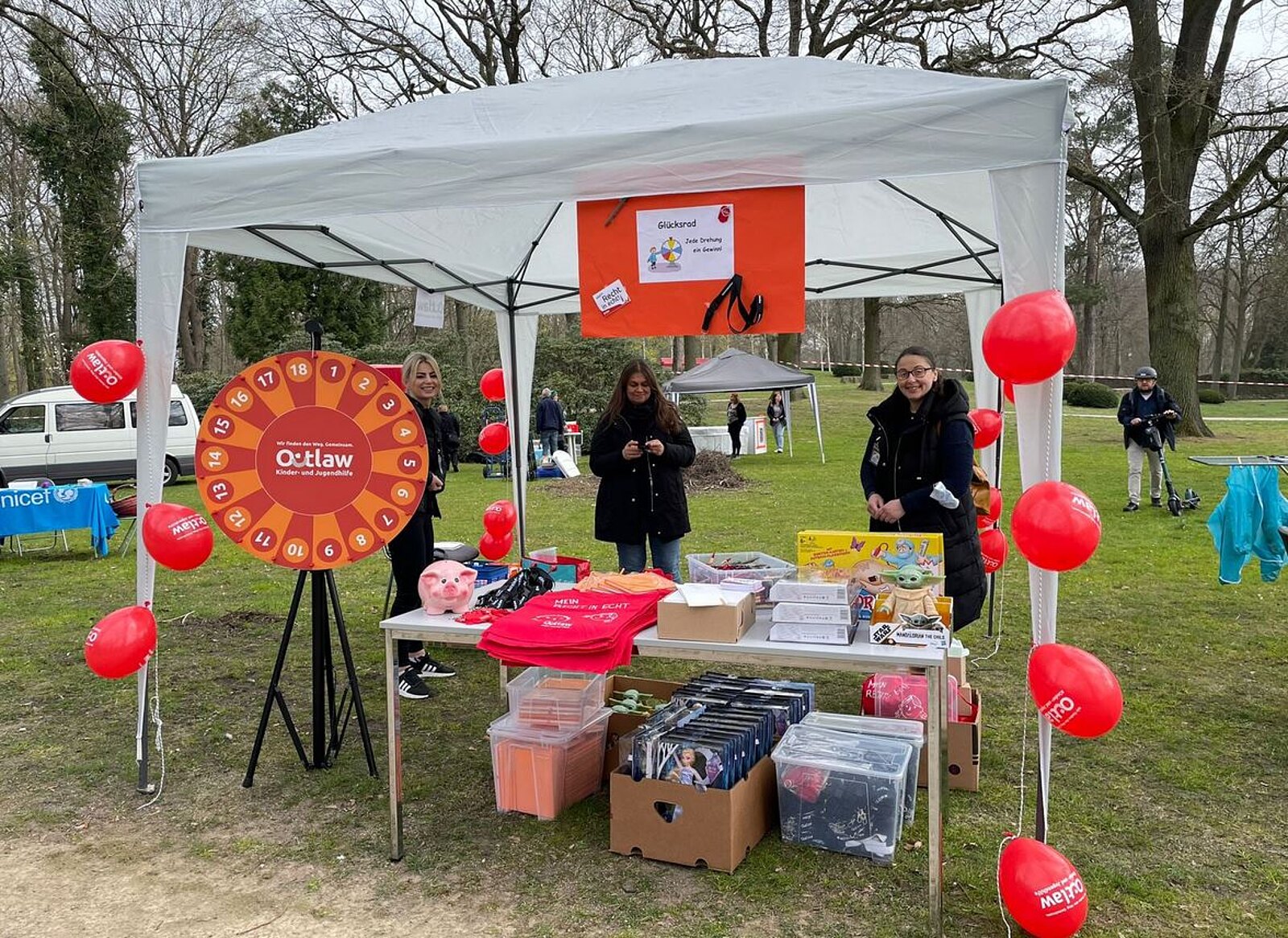 Bei unseren Kolleg:innen konnten sich die Besucher:innen beim Glücksrad über tolle Gewinne freuen – von Süßigkeiten über Schlüsselbänder und Kugelschreiber bis hin zu Eiskönigin-Puppen und StarsWars-Figuren, die vor allem bei den jüngsten Teilnehmer:innen für strahlende Kinderaugen sorgten. Auch ihrer Kreativität konnten die Kinder beim Gestalten der Farbkreisel freien Lauf lassen. „Die Teilnehmenden waren von beiden Aktionen sehr begeistert, sodass unser „Spendenschwein“ gut gefüllt werden konnte.“, betonte Mehtap Aydin, Leiterin der Kita Feidikstraße.