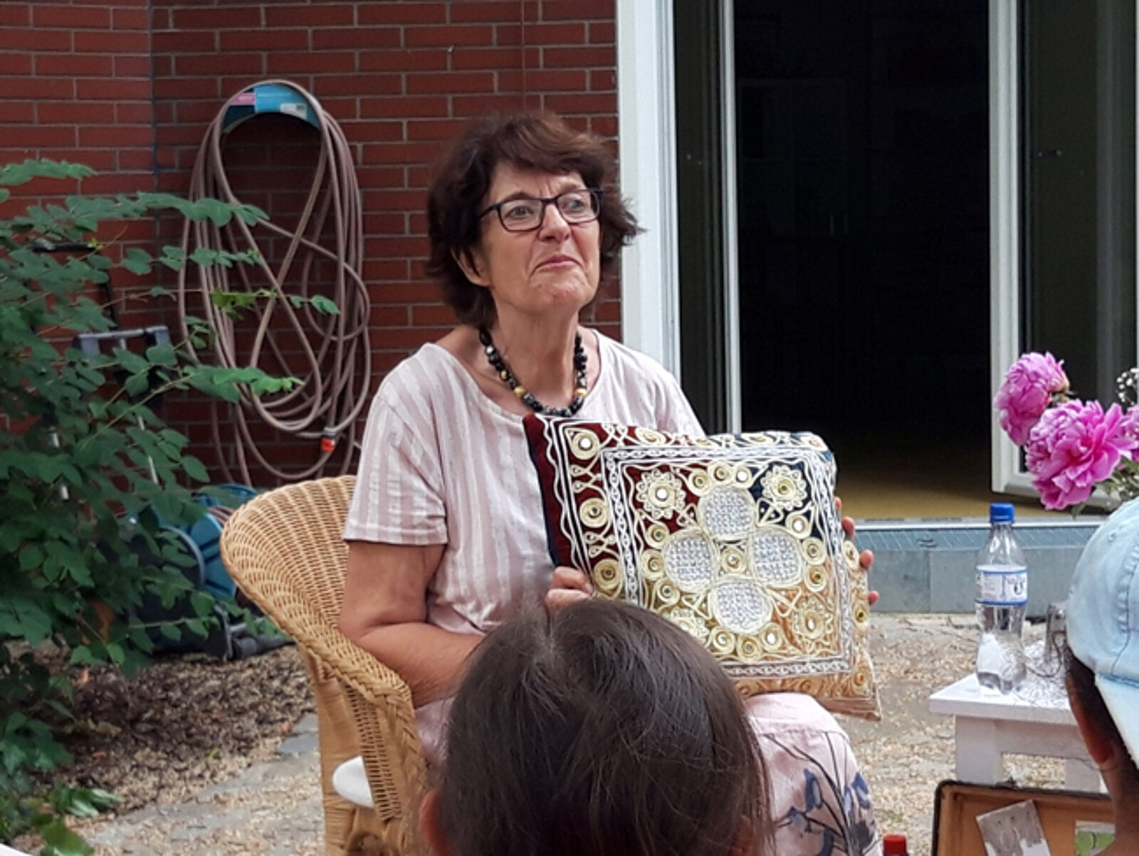 Gemeinsam mit ihren Erzieher*innen und der Kita-Sozialarbeiterin Nicole Krüger und mit Popcorn ausgestattet saßen die Kinder auf Kissen und Decken im Vorgarten der Kita und warteten gespannt darauf, was sich im geheimnisvollen Koffer befand. Lange ließ sie Angelika Horn nicht zappeln und öffnete den Koffer, der ein "Tausend-und-eine-Nacht-Kissen" barg.
