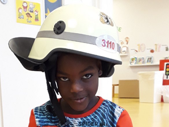 "Den Helm braucht man, damit der Kopf nicht brennt!" Die Feuerwehr zu Besuch in der Outlaw-Kita Heerstraße