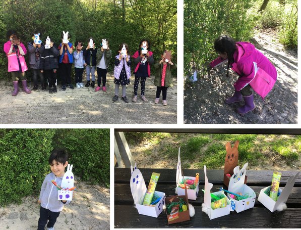 Begeistert durchsuchten alle mit ihren selbstgebastelten Osterkörbchen den Garten, schauten unter jedes Blatt und drehten sprichwörtlich jeden Stein um. Am Ende wurde die Ausbeute begutachtet und dann vernascht. Eine schöne Osterüberraschung!