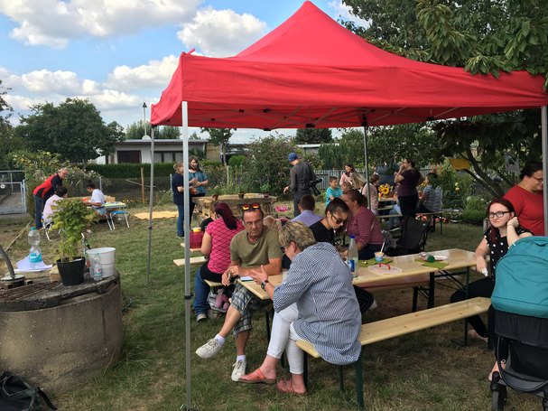 Gemeinsam mit mehr als 40 Gästen eröffnete am Freitag das Großenhainer-Team der Hilfen zur Erziehung im Landkreis Meißen den Gemeinschaftsgarten in der Gartensparte „Feldfrieden“. Die Kinder, Jugendlichen, ihre Familien und viele Garten-Interessierte nutzten das schöne Wetter, um einen Nachmittag im Grünen samt Abkühlung in der Minipoollandschaft zu verbringen. In Zukunft soll die Parzelle gemeinschaftlich genutzt und zum Blühen gebracht werden – dafür sammelte das Team Ideen am bunt geschmückten Ideen-Baum und sucht ehrenamtlich Engagierte.