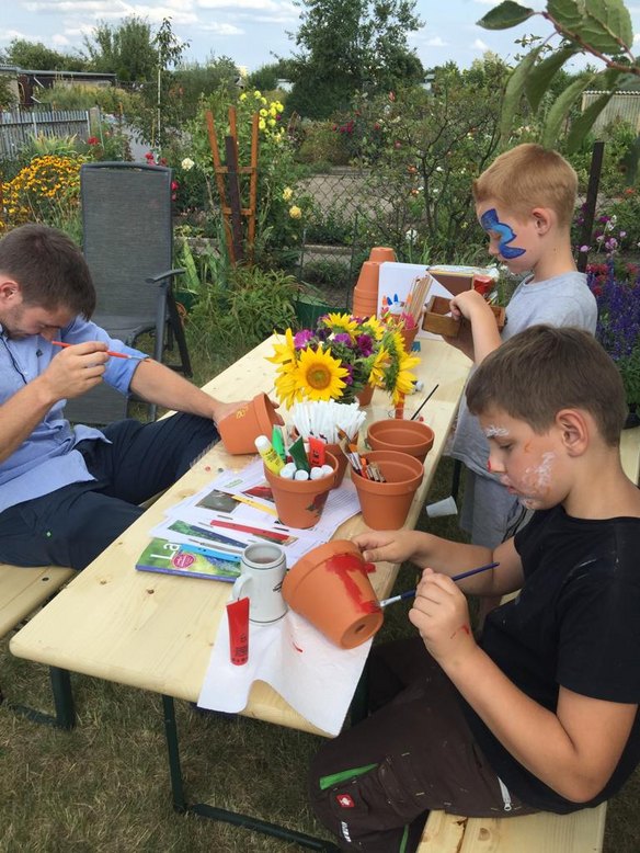 Zur Eröffnung führte das Outlaw-Team durch den Garten und sammelte kreative Ideen zur gemeinsamen Nutzung, darunter den Bau von Hochbeeten, einem Kreativ-Bereich für Familien oder Übernachtungen im Zelt. Bei warmen Temperaturen plantschen die Kids im Pool, spielten verschiedene Spiele (darunter das Outlaw-Monopoly), pflanzten erste Blümchen ein, machten Knüppelbrot und bemalten Blumentöpfe. Die Blumen dafür wurden vom Gartenbau Rühle aus Großenhain OT Zabeltitz gespendet – vielen Dank!