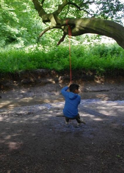 Ganz besonders spannend war der kleine Bach. Hier bauten sie neben einer Schaukel auch eine Matschrutsche. Für kleine Pausen gab es ein Zelt und natürlich Lunchpakete zur Verpflegung.