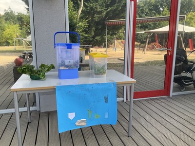 Dann ging es auch schon los. Mit Unterstützung der pädagogischen Fachkräfte wurde die Limonade zubereitet, die passend zur Abholzeit der Eltern bereitstand – eine schöne Erfrischung bei den warmen Temperaturen der letzten Tage. Doch zunächst ging der Verkauf stockend voran, denn die Kinder hatten sich fest vorgenommen 5 Euro pro Limo zu verlangen. Da halfen auch keine Einwände der pädagogischen Fachkräfte, dass dies zu viel sei. Doch die Kinder änderten noch mal ihre Strategie und boten die Limo auf Spendenbasis an. Die Eltern konnten daraufhin so viel Geld ins Sparschwein werfen, wie sie wollten und zeigten sich dabei großzügig. „Der Limo-Verkauf war ein voller Erfolg. Insgesamt kamen dabei 93 Euro zusammen – ganz zur Freude der Kinder“, betont Nadine Hahm.