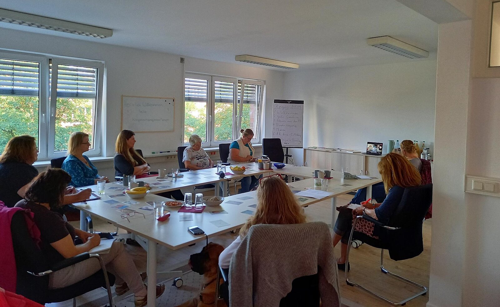 „Sieben Kooperationspartnerinnen kamen nach Bremen in unsere neuen Büroräume, während vier per Video dazu geschaltet waren“, berichtet Daniela Gröne-Herden. „Das hat sehr gut geklappt und ermöglicht nun auch Pädagog*innen, die keine Möglichkeit einer anderweitigen Kinderbetreuung haben und solchen, die sehr ländlich und weit entfernt wohnen, an den Treffen teilzunehmen.“