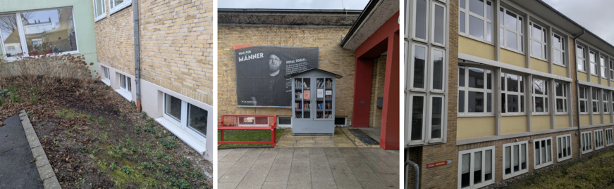 Auch zunehmende Hitzeperioden wirken sich auf das Gebäude und die Nutzung aus. Im Sommer steigen die Innenraumtemperaturen teilweise auf über 30 Grad. Gleichzeitig fehlen in den Außenbereichen – etwa rund um Café und Spielgarten – ausreichend verschattete Aufenthaltsmöglichkeiten. An besonders heißen Tagen bedeutet das eine zusätzliche Belastung für Kinder, Jugendliche, Senior:innen sowie Mitarbeitende.