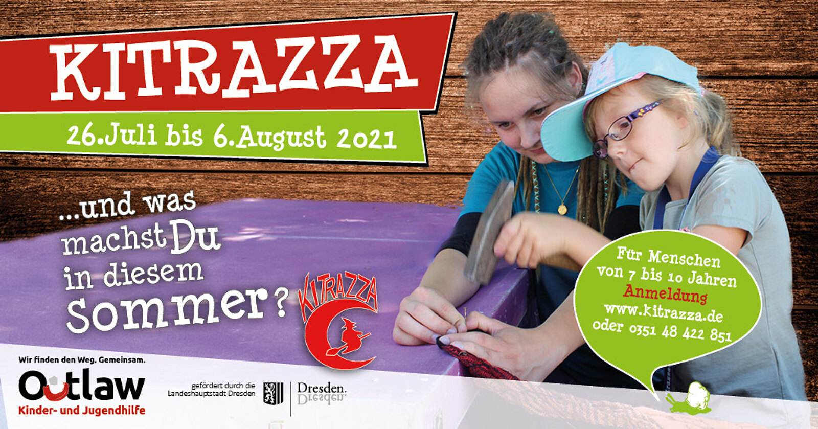 Heute öffnet KITRAZZA – die KinderTraumZauberStadt – das TraumZauberTor und zwar am neuen Standort auf den Hufewiesen in Dresden-Trachau. Bis zum 6. August errichten hier Mädchen und Jungen zwischen sieben und zehn Jahren im Rahmen des Beteiligungsprojekts ihre ganz eigene Stadt. Es gibt nur noch wenige freie Plätze für die 2. KITRAZZA-Woche. Außerdem sucht das Projektteam ehrenamtliche Helfer*innen, die das Projekt mit finanzieller oder ganz praktischer Hilfe unterstützen (siehe unten).