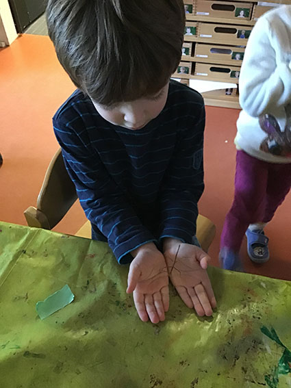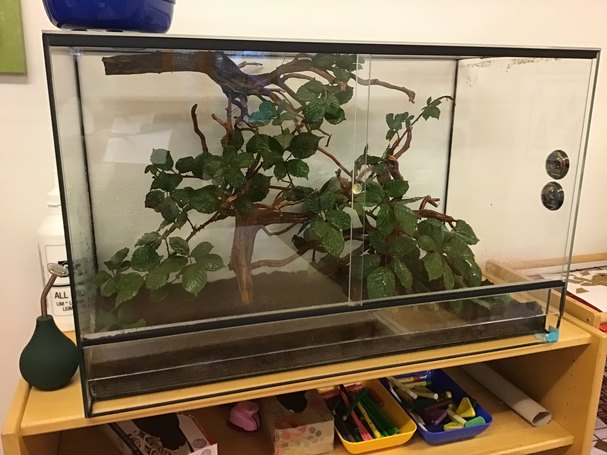 Vorab ging es erstmal an die Vorbereitungen: Die Kleinen haben dafür zunächst eifrig das Terrarium gesäubert – im Anschluss befüllten die Kids es auch schon mit Sand, Ästen zum Klettern und Brombeersträuchern zum Fressen, bevor die Stabschrecken vom Züchter abgeholt und bei uns in die Kita einziehen konnten.