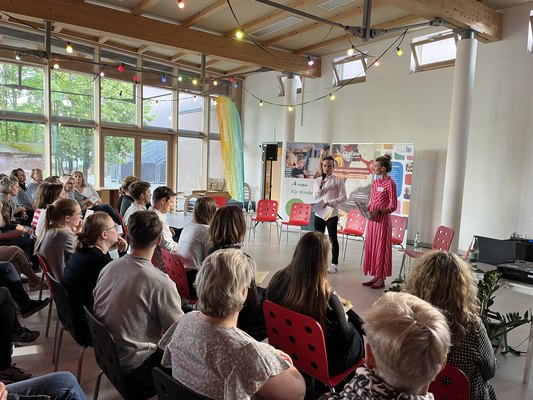 Aus wissenschaftlicher Perspektive ordneten Victoria Jankowicz und Theresa Barth vom Institut für Pädagogik und Didaktik im Elementar- und Primarbereich der Universität Leipzig die Praxisbeispiele ein und präsentierten Ergebnisse aus zwei wissenschaftlichen Begleitstudien zur Kita-Sozialarbeit. Eine der wichtigsten Erkenntnisse: Der überwiegende große Teil aus der Elternschaft in Kindertageseinrichtungen mit Kita-Sozialarbeit wünscht sich eine Verstetigung in der Regelfinanzierung. Damit endete die Keynote an der wohlmöglich größten Hürde, die es bei jeder politischen Debatte zu überwinden gilt: der Finanzierung.