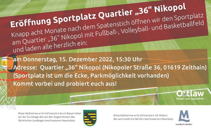 Kommt vorbei! Quartier "36" Nikopol in Zeithain eröffnet neuen Sportplatz