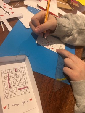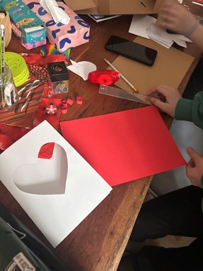 Kreativ ging es auch am nächsten Tag weiter! Denn der Valentinstag stand vor der Tür. Vier Mädchen und ein Junge gestalteten für diesen speziellen Tag mit Papier, Schere, Kleber und Stiften Geschenke, um sie einer besonderen Person am Valentigstag zu überreichen. "Für Mutti, für Papa, für Oma und für den aktuellen Crush – alles war dabei und es wurde viel Liebe verteilt", erinnert sich Pauline Peglau und erzählt: "Dabei entstanden unheimlich tolle Gespräche. Die Kids erzählten, wie lange ihre Eltern bzw. ihre Großeltern schon zusammen sind, was sie erlebt haben und wie sie miteinander umgehen – rührende Geschichten."