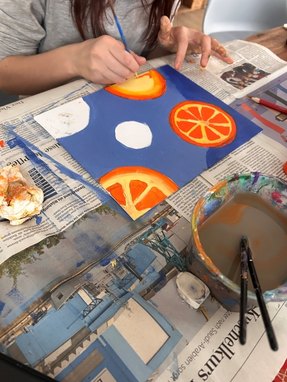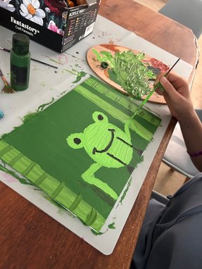"Pauline, wir möchten mal wieder mit Acrylfarben malen", äußerten zwei Mädchen und fünf Jungs des Outlaw-Jugendfreizeitzentrum Kyritz ihren Wunsch bei der Planung der Nachmittagsangebote im Februar. "Kreativität unterstützen wir natürlich besonders gerne," sagen Pauline Peglau, Ansprechpartnerin am Outlaw-Jugendfreizeitzentrum Kyritz, und ihre Kollegin Manina Vortanz. "Keine elektronischen Hilfsmittel! Das war unsere einzige Bedingung, denn die Kids haben sich angewöhnt, sofort das Handy zu zücken und nach Ideen zu suchen – diesmal nicht! Alles musste aus eigenem Kopf kommen", erzählt Pauline Peglau weiter. Also nahmen sich am 12. Februar sieben Kinder und Jugendliche eine Auszeit vom Handy, um ganz frei zu malen. Mit dieser Vorgabe waren die 10- bis 15-Jährigen den ganzen Nachmittag sehr konzentriert am Malen und es entstanden tolle farbenfrohe Kunstwerke wie ein Frosch, italienische Orangen, griechische Trauben. "Es war eine Umstellung für die Kids, doch sie waren dann richtig begeistert. Ziel ist es nun, ab und zu das Handy mal wegzulassen", lächelt Pauline Peglau.