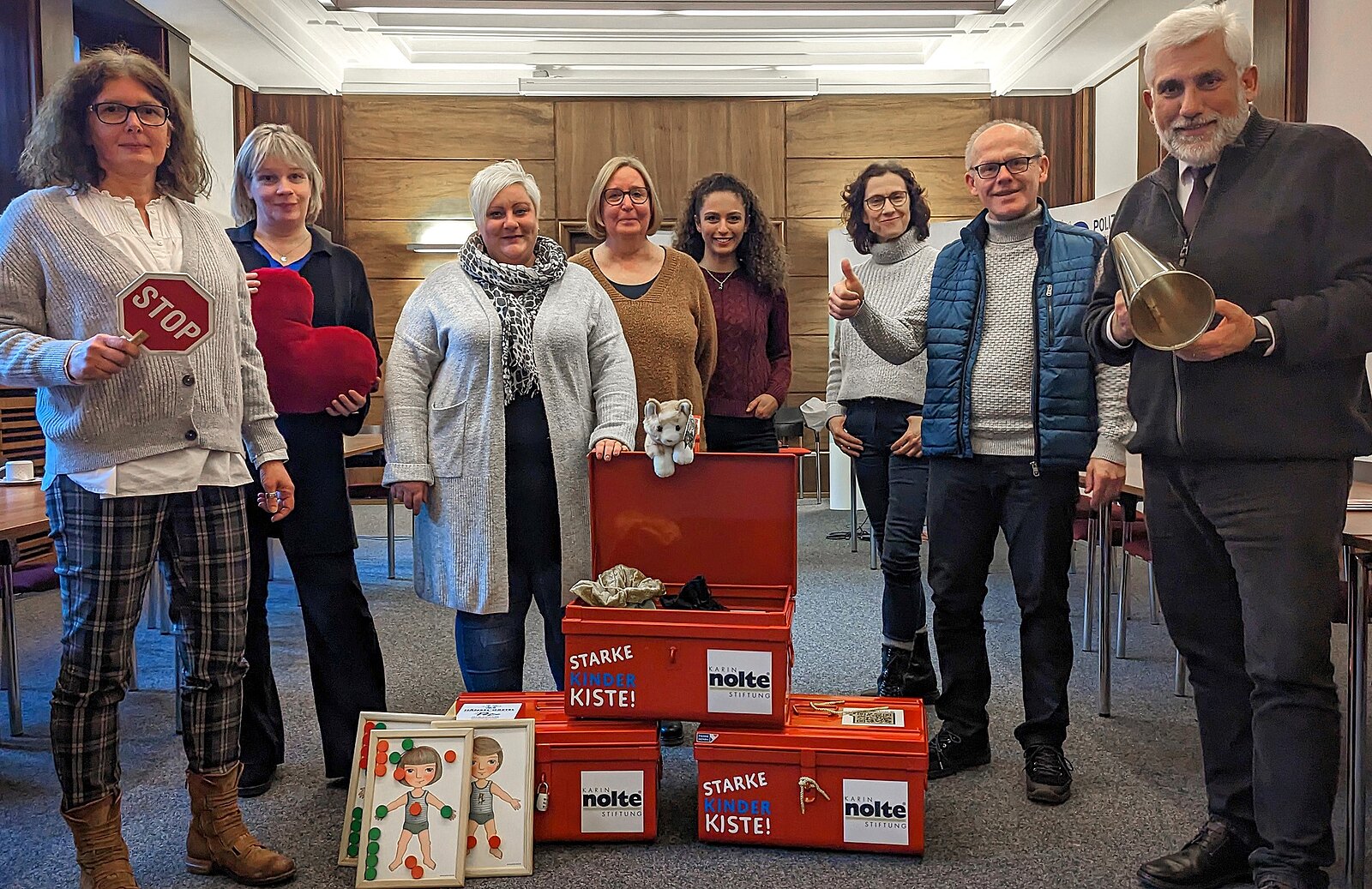 Kinder vor sexueller Gewalt schützen: Seit Juli 2022 klären dazu die Duisburger Outlaw-Kitas Haus-Knipp-Straße und Albrechtstraße gemeinsam mit der Kita Dr. C. Otto Straße in Bochum im Rahmen des Projektes „Starke Kinder Kiste“ auf. Nun macht die Bochumer Polizei die Erweiterung des Programms auf insgesamt 12 Kitas im Ruhgebiet möglich. Gemeinsam stellten die Projektpartner:innen um Cornelia Heppner (Kriminalprävention und Opferschutz), Tanja Brügger (Theaterpädagogische Werkstatt), Denise Dondrup (IFAK Kindergarten e. V.), Christina Borkowski (Caritas Bochum), Zehra Tekin-Ertan und Barbara Mag (Outlaw-Kitas Ruhrgebiet), Alfred Seidensticker (Deutsche Kinderstiftung Hänsel+Gretel) sowie Bochums Polizeipräsident Jörg Lukat zur Auftakt-Pressekonferenz am 16. Dezember 2022 die Kooperation vor.