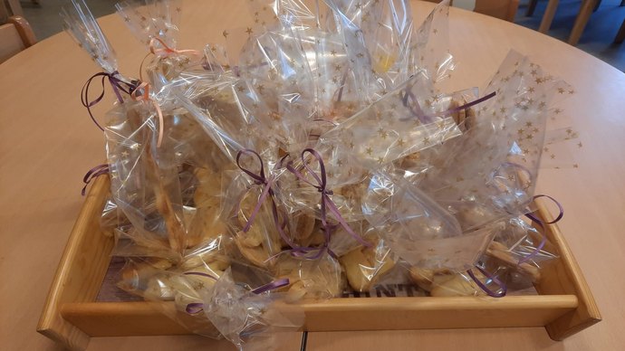 "Unsere Kita-Gruppe „Schmetterlinge“ nahm die Zusammenarbeit diese Woche zum Anlass, Osterkekse für die Bewohner:innen zu backen. Insgesamt 30 kleine Päckchen mit leckeren Keksen überreichten die 3- bis 4-Jährigen dann am 30.03.2023 persönlich und verteilten die süßen Leckereien an die Bewohner:innen", berichtet Stefanie Haase. Sowohl die Kinder, als auch die Bewohner:innen des Altenpflegeheims freuten sich über den Besuch und sangen zum Ausklang noch gemeinsam Osterlieder.