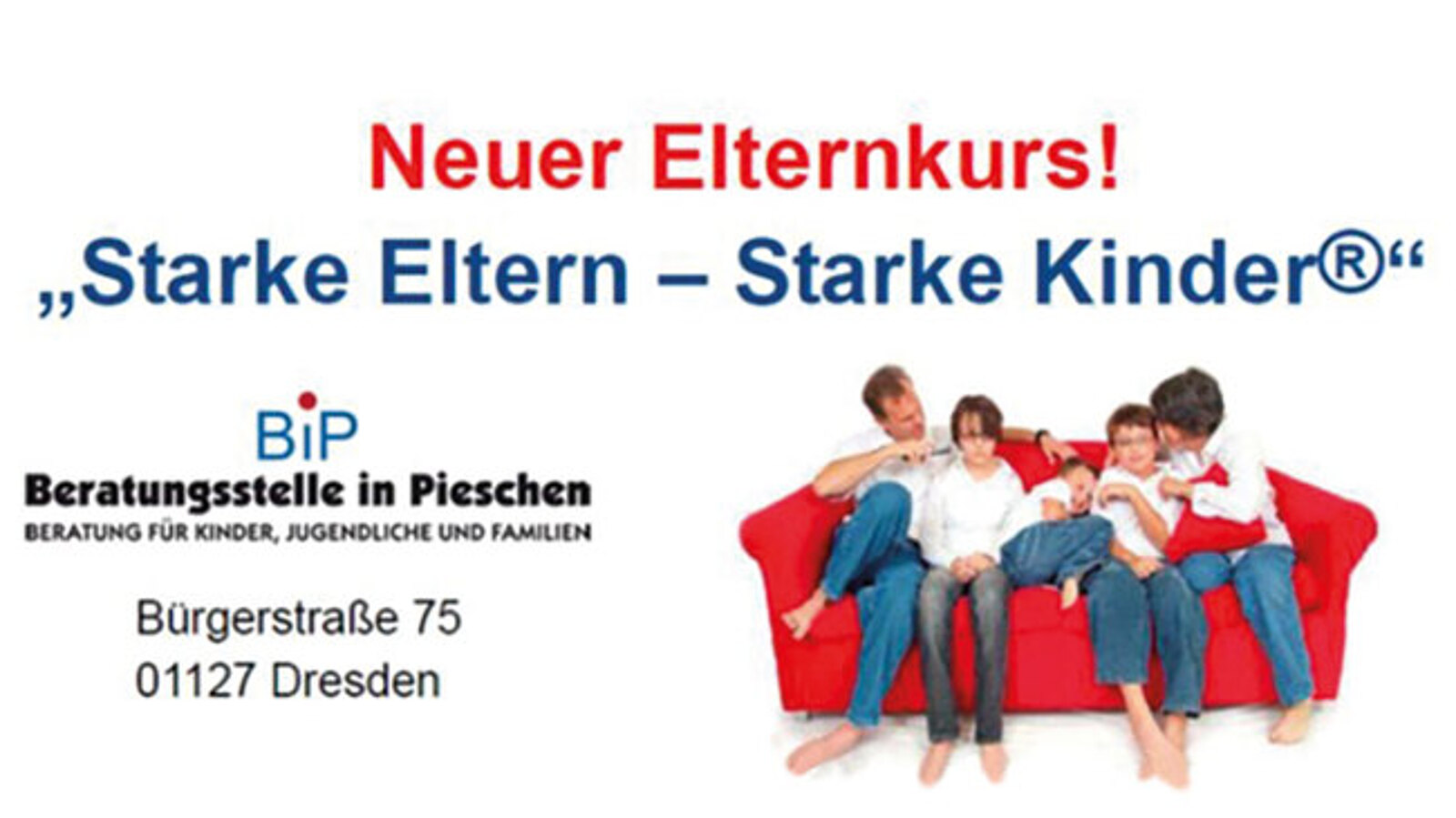 Neue Termine: Ab sofort ist die Anmeldung für die neue Kurs-Einheit "Starke Eltern – Starke Kinder®" bei der Beratungsstelle für Kinder, Jugendliche und Familien in Pieschen – BiP in Dresden möglich. Das Team freut sich, ab November wieder Elternkurse anbieten zu können. Es gibt 2 Kurse mit je 13 Terminen zu folgenden Zeiten anbieten: