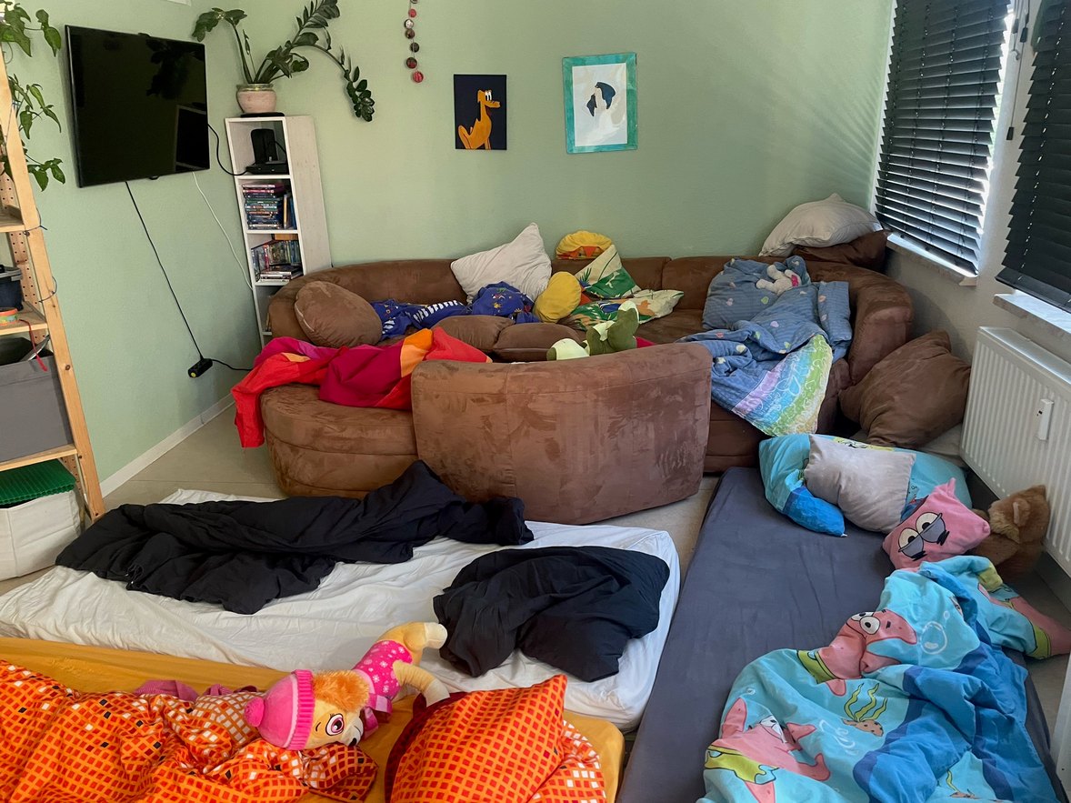 Beliebt sind auch die Pyjamapartys in der WG, die in den Ferien immer ganz oben auf der Wunschliste der Kids stehen und mittlerweile eine schöne Tradition sind: "Die Kinder finden das immer total cool. Sie übernachten dann im Wohnzimmer, bleiben länger auf und dürfen einen Film schauen", beschreibt Gideon Vogler vom pädagogischen Team und weiß: "Meistens schlafen die Kinder schon recht früh ein, auch wenn sie sich immer wieder vornehmen, länger wach zu bleiben." Das Wohnzimmer wird dann zur großen gemeinsam Kuschelecke und alle fühlen sich pudelwohl.