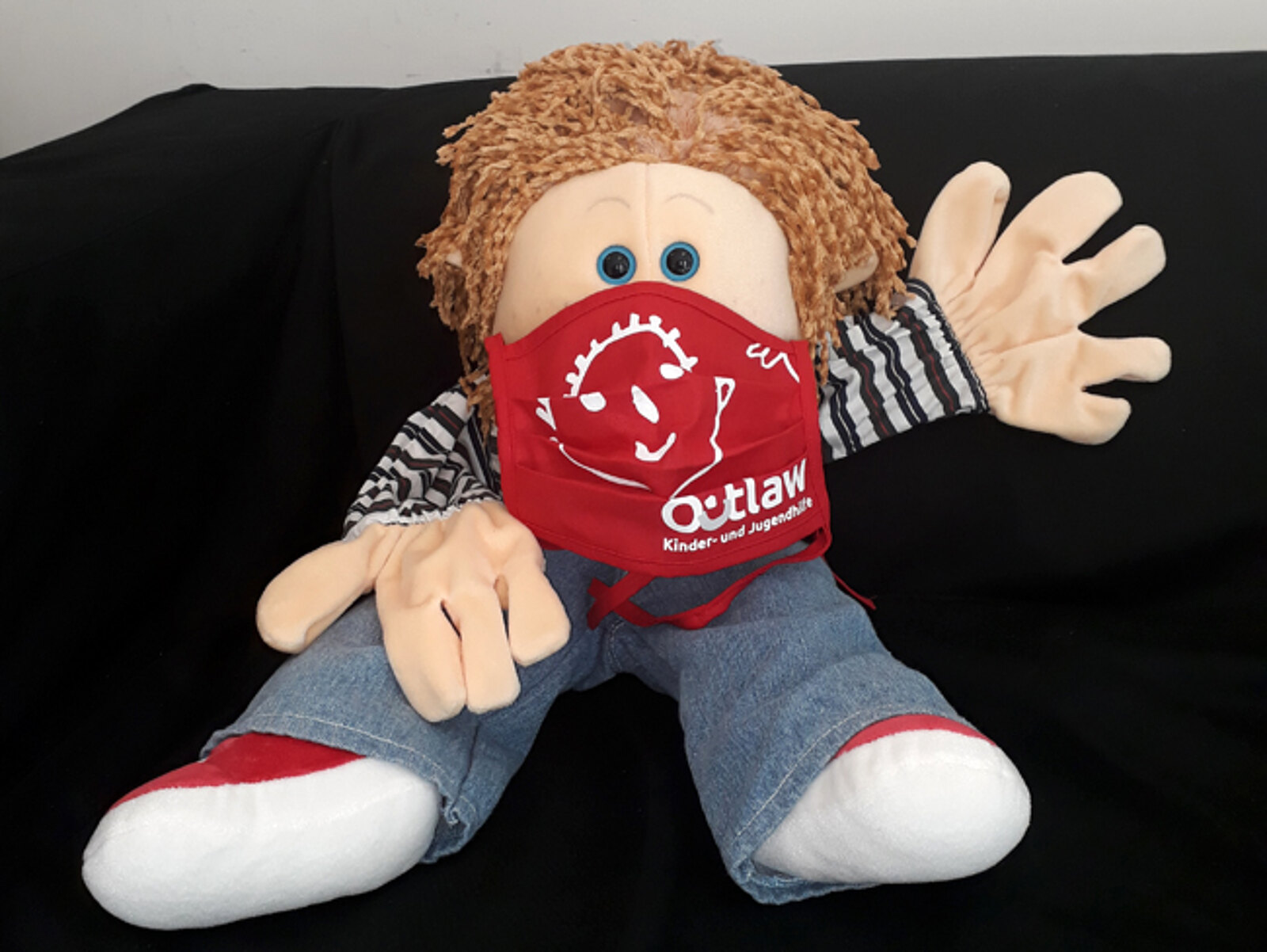 Britta Nowotny, Krippenerzieherin der Berliner Outlaw-Kita Am Maselakepark, kam auf eine pfiffige Idee und funktionierte einen Outlaw-Stoffbeutel um. Aus dem zu 100% bestehenden Baumwollstoff nähte sie sich eine Nasen-Mund-Schutzmaske.
