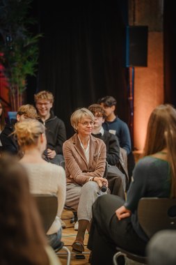 Die Jugendlichen wollten wissen, welche Erwartungen die Ministerin an Lehrkräfte hat – und ob diese ausreichend vorbereitet sind, um Schüler:innen in Krisen zu unterstützen. Der Wunsch nach mehr Sensibilität, mehr Wissen und mehr Zeit für Gespräche war deutlich spürbar.
