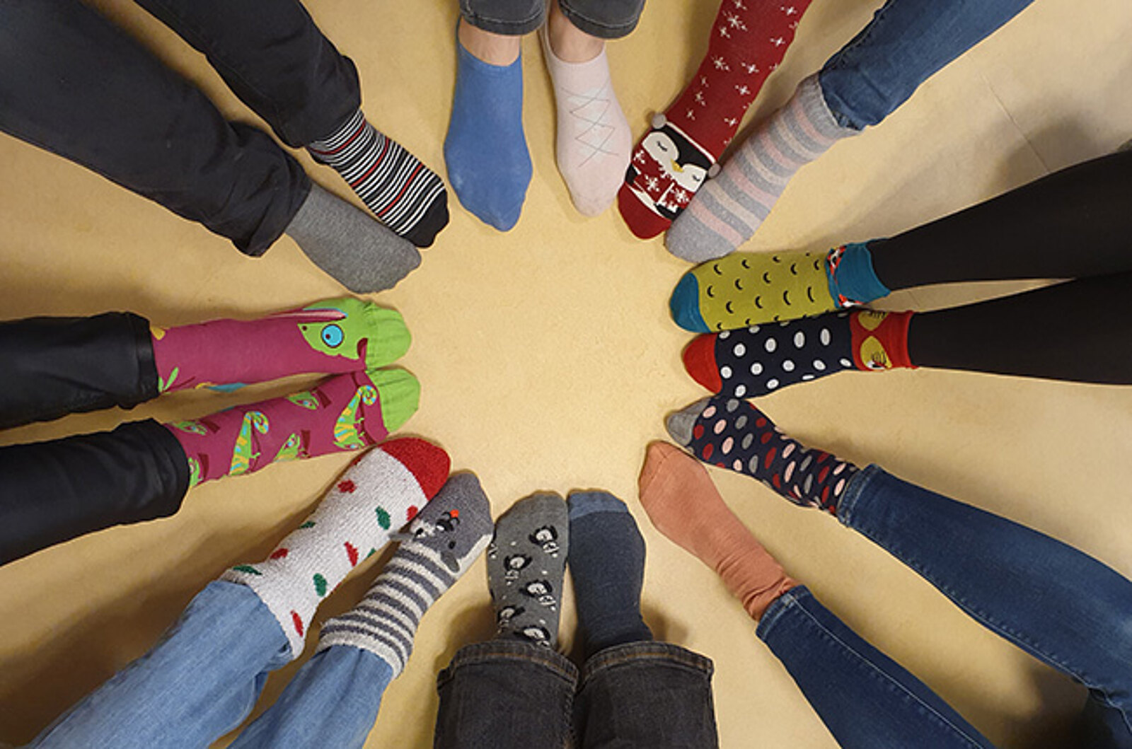 Am 21. März ist Welt-Down-Syndrom-Tag und mit diesem Tag geht die „Sockenaufforderung“ einher. Alle Menschen sind gefordert, zwei unterschiedliche Socken zu tragen um zu zeigen: Jede*r ist einzigartig und diese Individualität sorgt für eine bunte und inspirierende Welt.