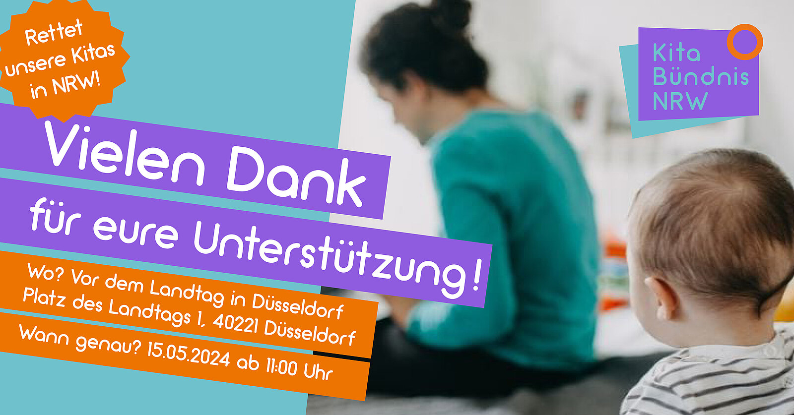 Mehr als 30.000 Menschen haben ihre Unterschrift für eine gerechte Kita-Finanzierung in NRW bereits abgegeben - online und vor Ort in den Kitas in NRW. Diese wollen wir nun gemeinsam mit Vertreter:innen des Kita Bündnisses NRW am 15. Mai 2024 vor dem Düsseldorfer Landtag überreichen. Und die Familienministerin Josefine Paul hat unsere Einladung angenommen.