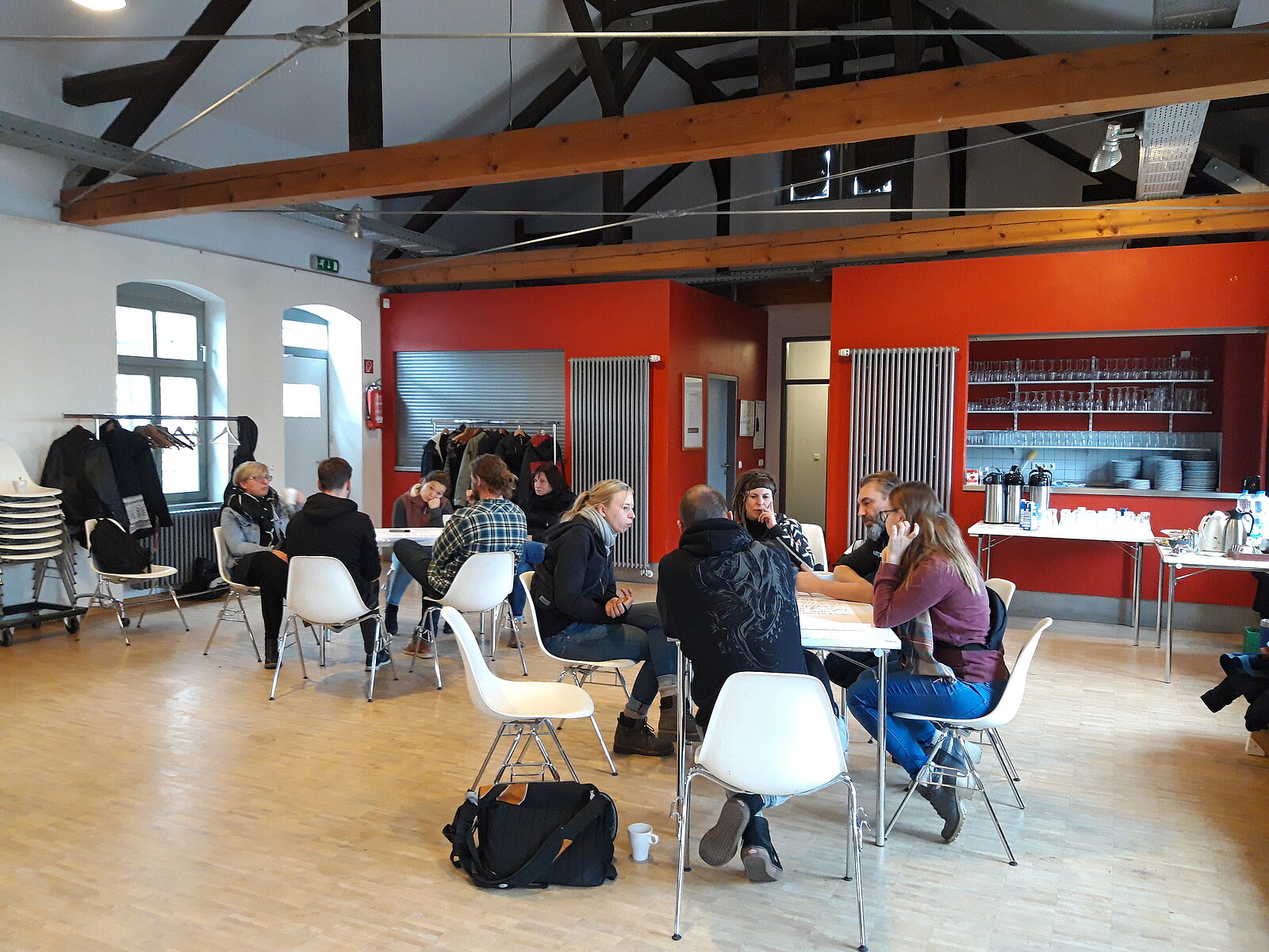 Abgerundet wurde der Tag nach dem Ende der Veranstaltung durch einen gemütlichen Jahresausklang für alle Mitarbeiter*innen des Fachbereiches. Dazu gab es Getränke an der Feuerschale im Hof sowie Billard- und Kickerspiele im Offenen Treff des EMMERS.
