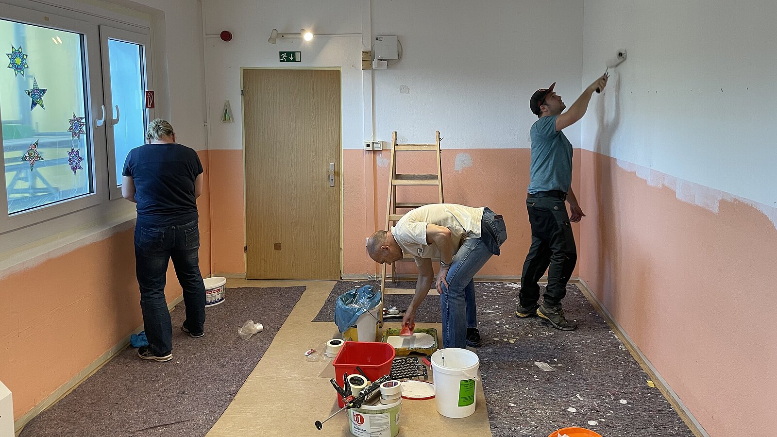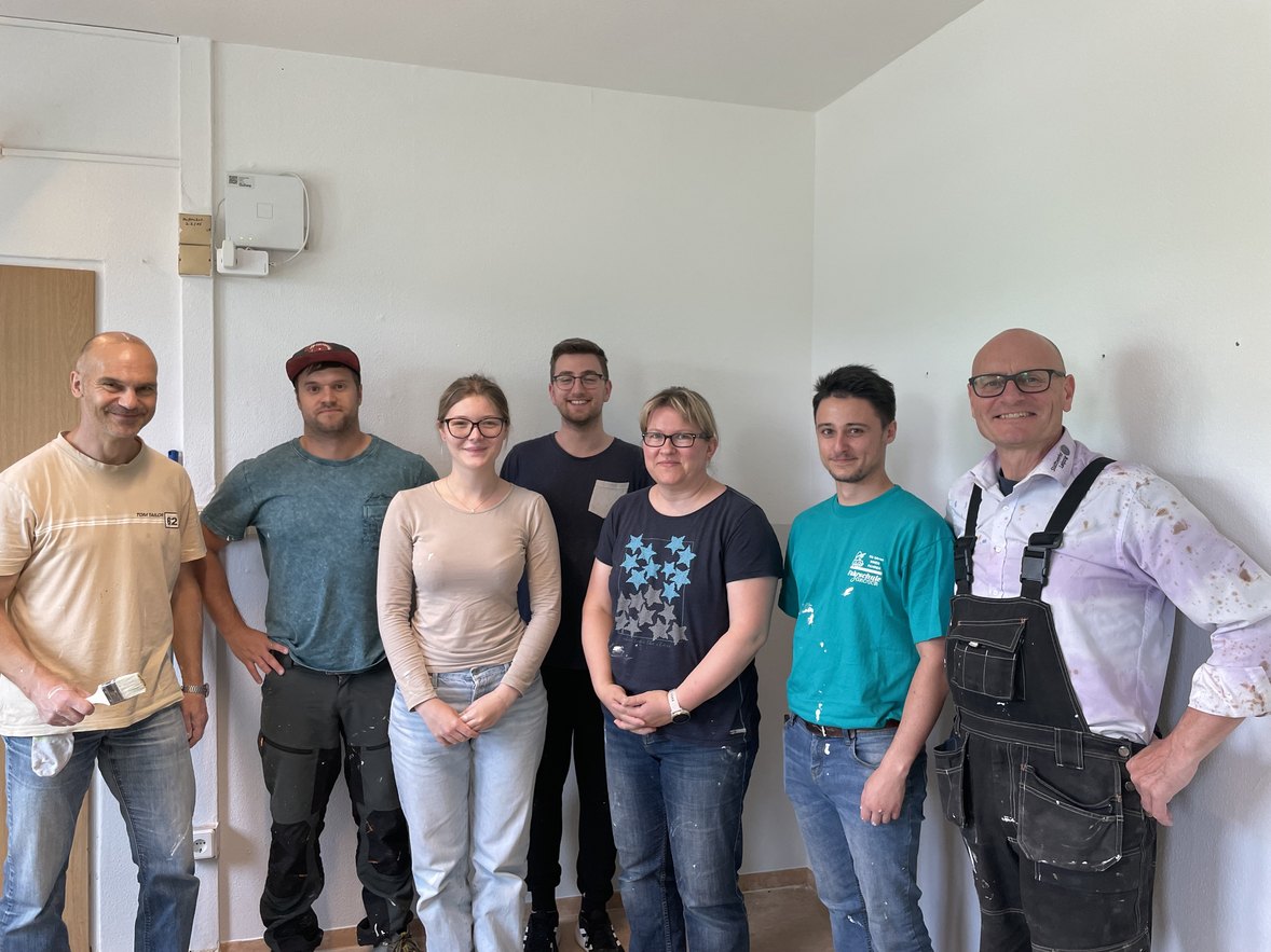 Ausgerüstet mit Leitern und Farbeimern begannen die Mitarbeiter:innen der Stadtwerke Leipzig die Renovierung mit einer beeindruckenden Energie. Präzise platziertes Abklebeband und sorgfältig angebrachte Abdeckfolien versprachen ein perfektes Ergebnis bei den Malerarbeiten. Jede Wand wurde mit Hingabe und Professionalität neu gestrichen. Die Atmosphäre war geprägt von spürbarer Begeisterung und gemeinsamer Zielstrebigkeit.