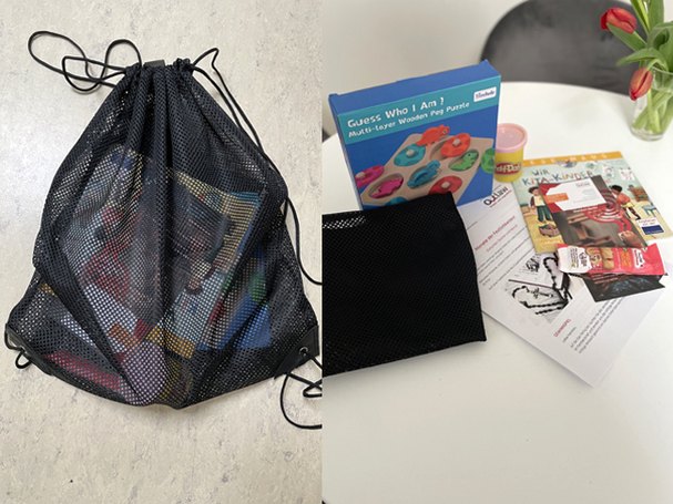 Die Willkommenstüten sind für Familien geplant, die sich mit ihrem Kind in der Eingewöhnung befinden. Die praktische Netztasche bietet sich ideal auch für Einkäufe oder Sandspielzeug der Kinder an. In ihr befinden sich drei verschiedene Puzzle je nach Altersgruppe, ein gesunder Snack und Knete für das Kind, ein "Willkommen in der Kita Buch" sowie ein Familienbegrüßungsbrief. Der Flyer über die Kita-Sozialarbeit und eine Liste mit den wichtigsten Netzwerkpartner:innen im Bezirk komplementieren das hilfreiche Informationsmaterial. "So haben die Familien einen kleinen Überblick über die Angebote der Kita und im Bezirk. Die Wilkommenstüte ist somit auch ein Zeichen für die Eltern und Kinder der herzlichen Begrüßung und des Willkommens", erklärt Darcey Mandanici und bedankt sich im Namen der Kita beim Bildungsverbund im Märkischen Viertel für die Projektgelder sowie für die tolle Zusammenarbeit.