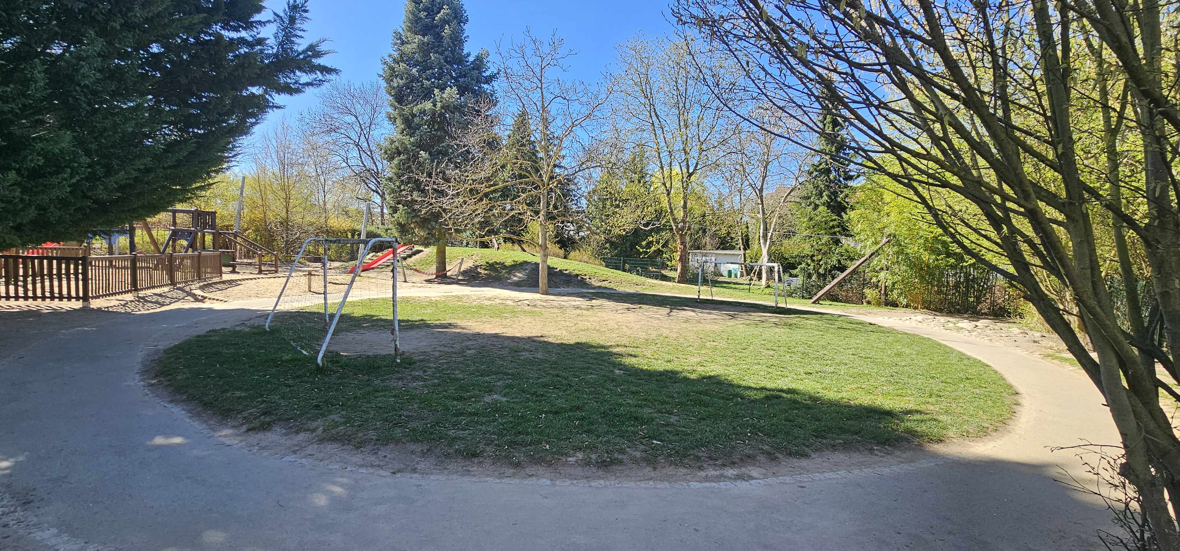 Insgesamt sollen viele Pflanzen am und um das Gebäude angebaut werden, die kühlend wirken und auch Schatten spenden. Dazu sind einige sogenannte graue Maßnahmen geplant, wie beispielsweise die Anschaffung von Deckenventilatoren und eine Innenbegrünung. So kann die kühlende Wirkung naturbasierter Maßnahmen intensiviert werden. Um die Wasseransammlung, im Kita-Garten nach Regen zu minimieren, soll der Sandspielbereich neugestaltet werden. Dann kann auch ein neues Fußballfeld mit einem Hybridrasen entstehen – das ist ein Gemisch aus Kunststofffasern mit Naturrasen. Dieser Rasen ist viel belastbarer und vor allem wasserdurchlässiger und damit perfekt für die Nachwuchs-Kicker der Kita.