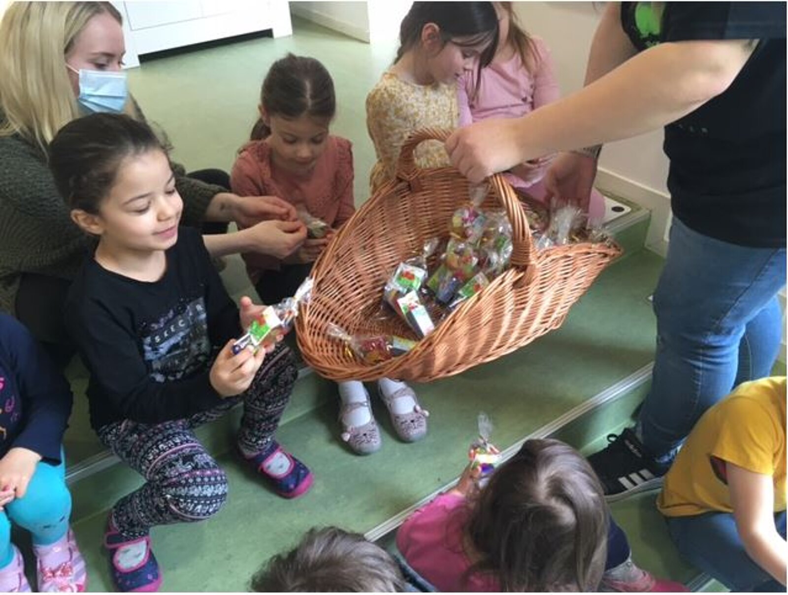 Als die Kinder erfuhren, dass auch Kitaleiterin Mehtap fastet, waren sie ganz aufgeregt und wollten ihr ein paar Fragen zu diesem Thema stellen. Darum luden die Gruppen Mehtap in den Gesprächskreis ein. Besonders interessierte die Kinder wie es sich anfühlt, den ganzen Tag nichts zu Essen.